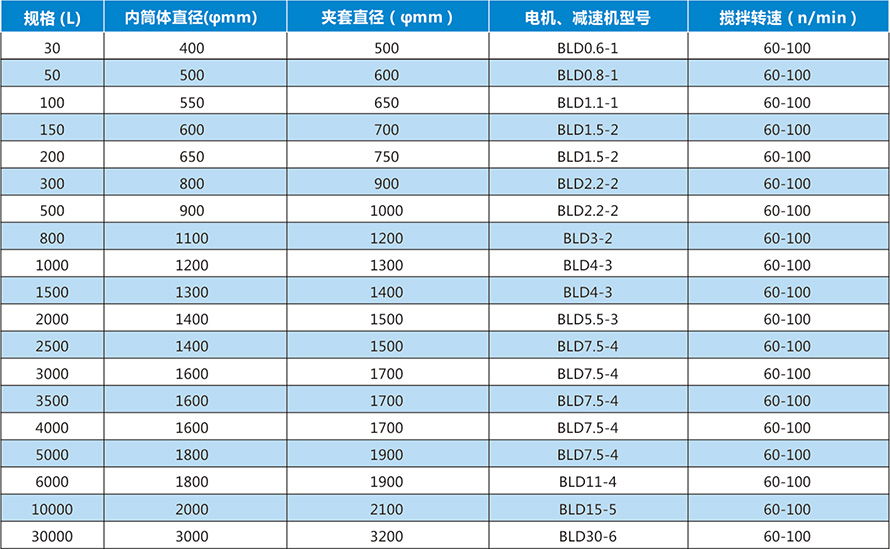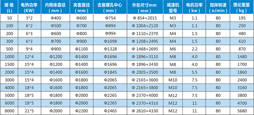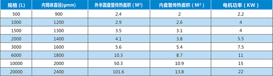 外半圓管導熱油(蒸汽加熱)不銹鋼反應(yīng)釜主要技術(shù)參數(shù)